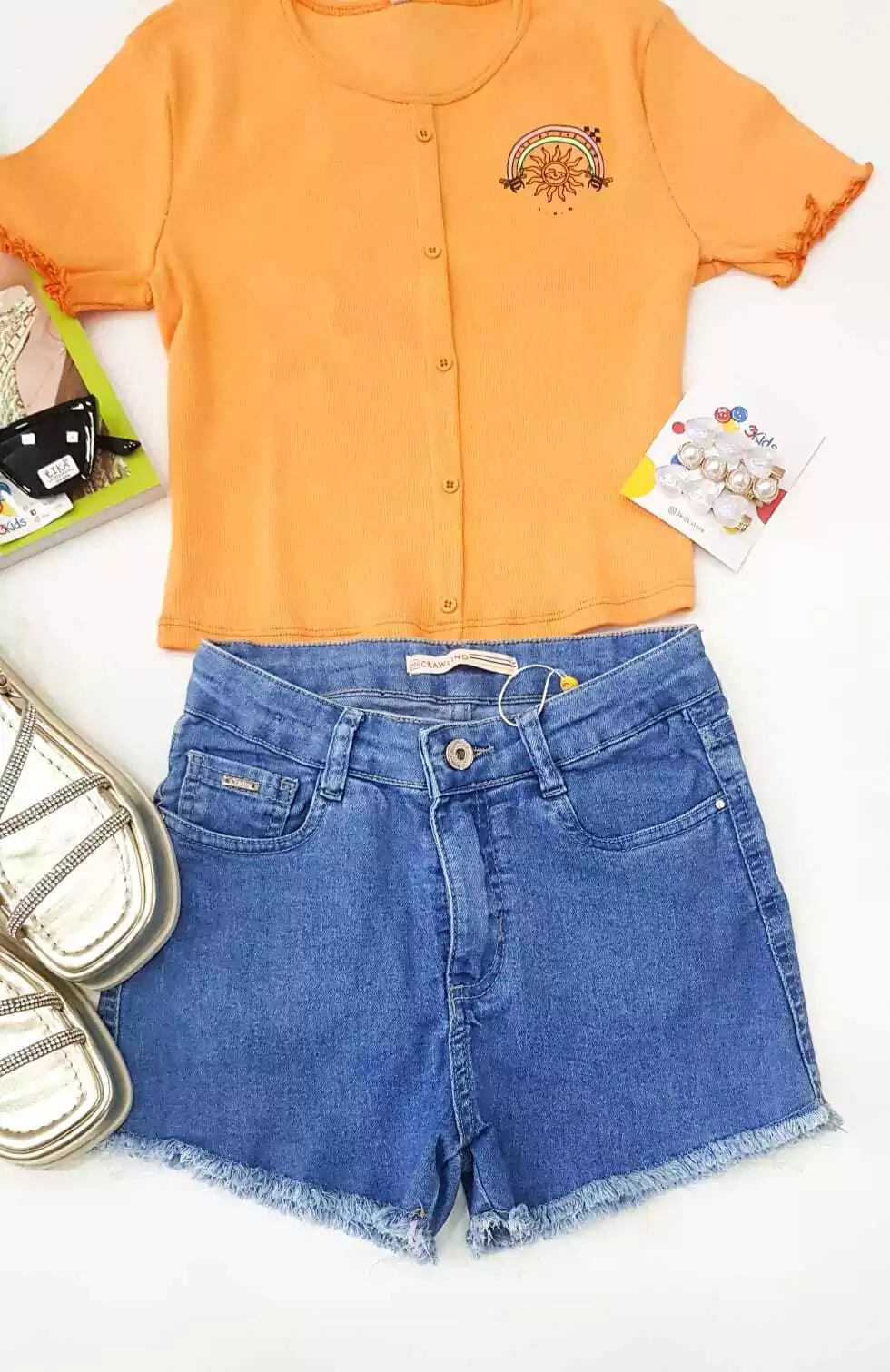 Blusa Infantil Canelada Botões Laranja Iam Authoria R3069