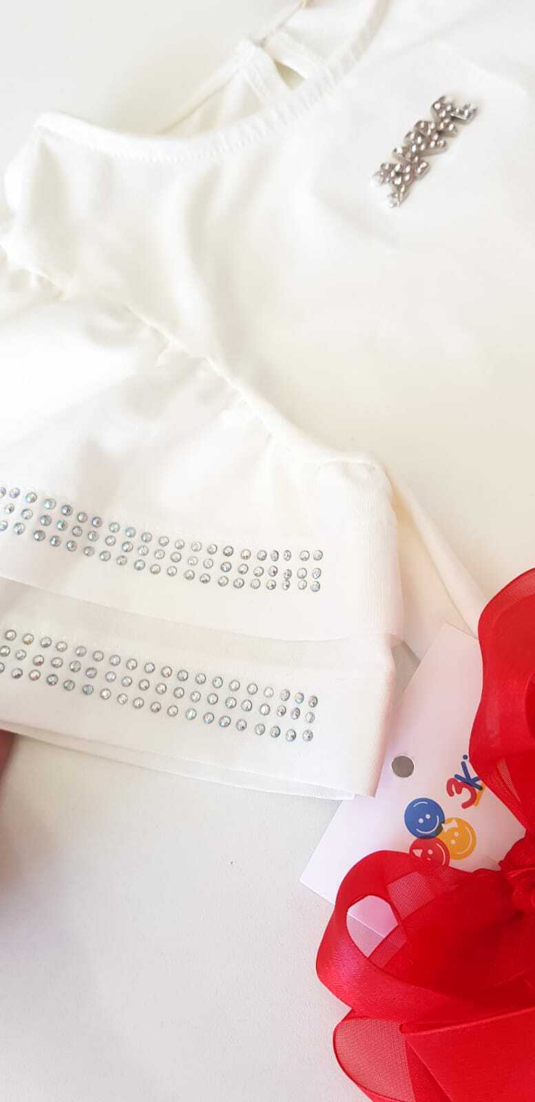 Blusa Infantil Manga Evasê Strass Off Animê N3401-P