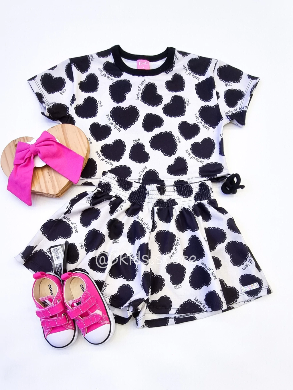 Conjunto Infantil Corações Preto E Branco Cinti 12708-V2