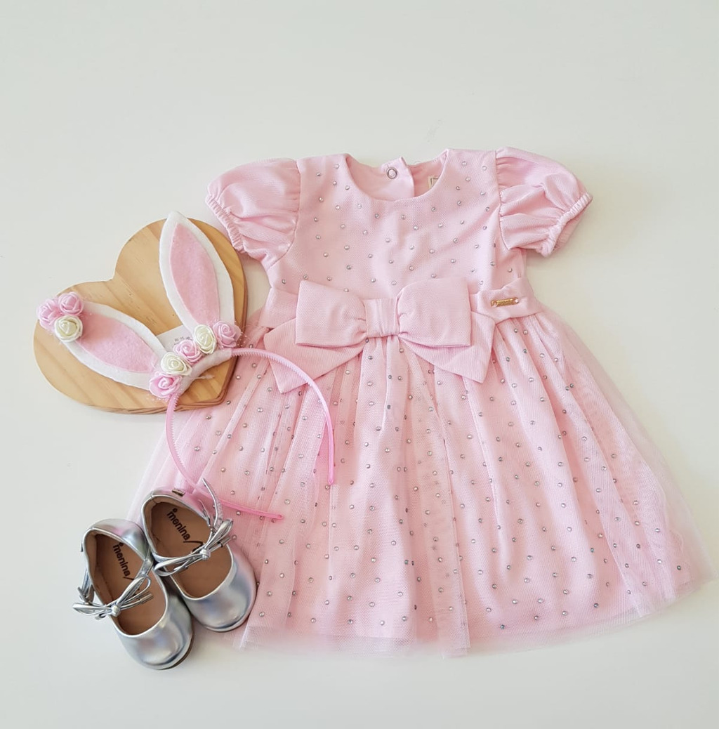 Vestido Bebê Tule E Strass Rosa Animê L2287